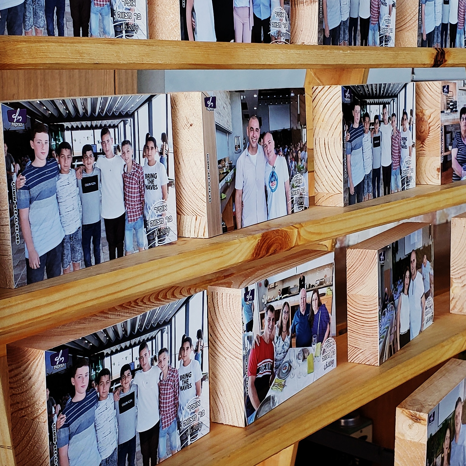 סטורי בלוק – הדפסת תמונות האורחים על גבי בלוקי עץ מיוחדים.